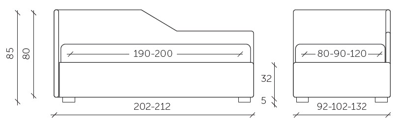 Dormeuse sx con box contenitore frontale - Disponibile anche con box frontale dx