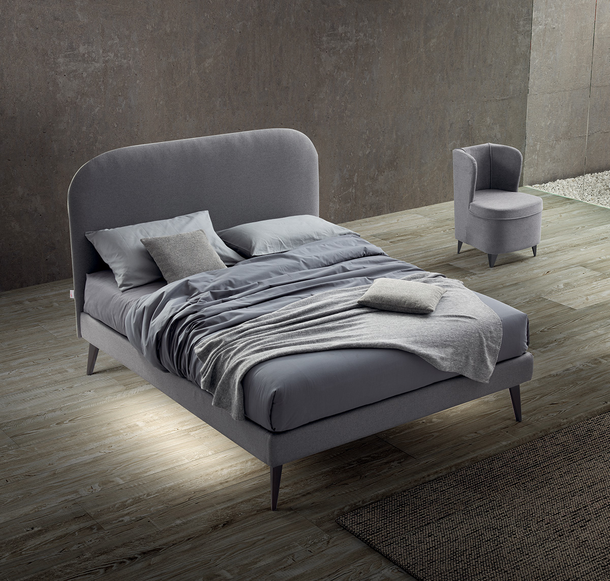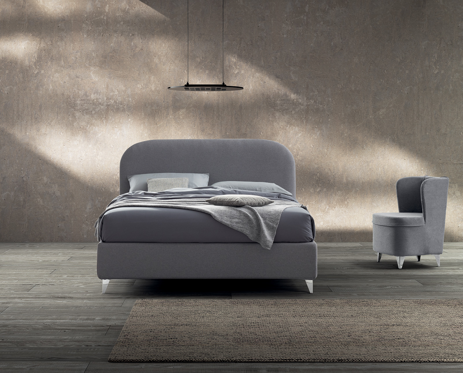 È un letto dal design semplice e funzionale che si integra