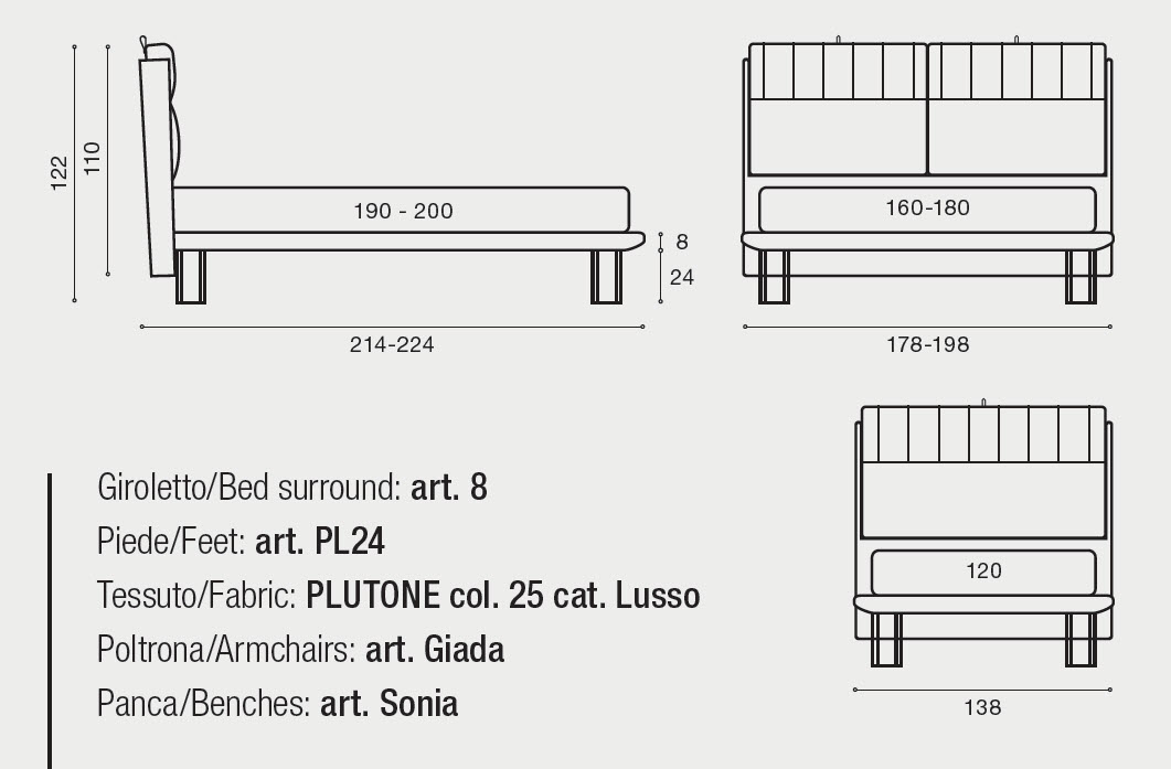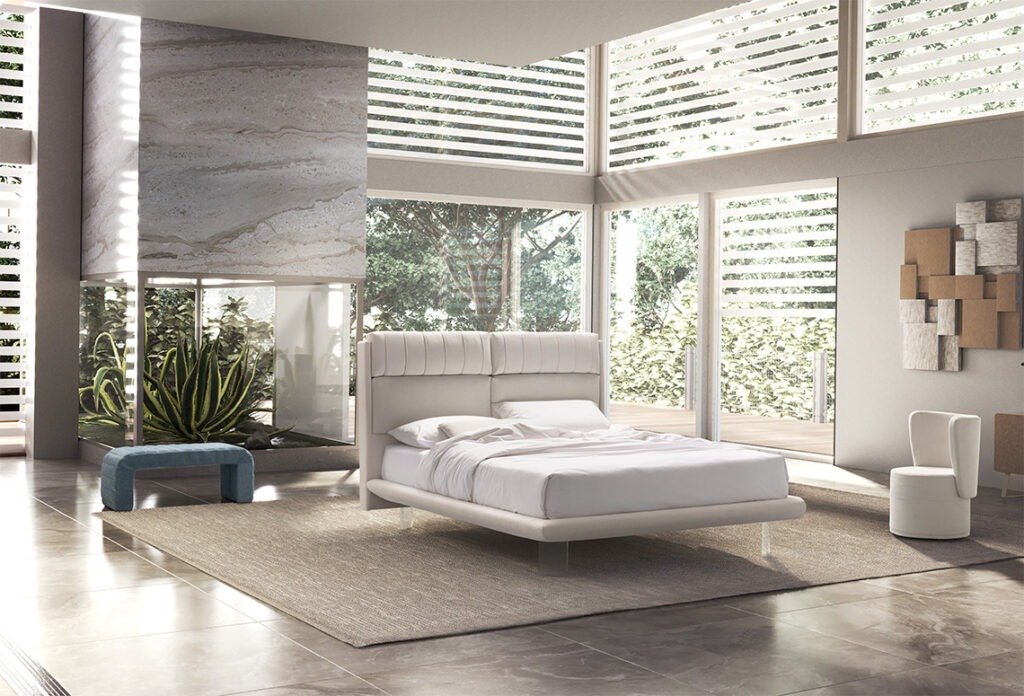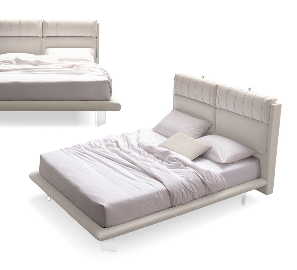 The design and stylistic rigour of the bed’s lines are at its core. The structural base version with transparent feet makes the bed feel so weightless in the room that it almost appears to be floating.