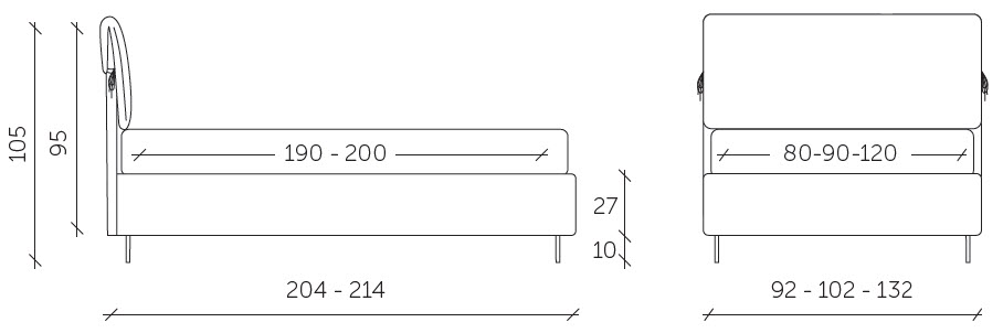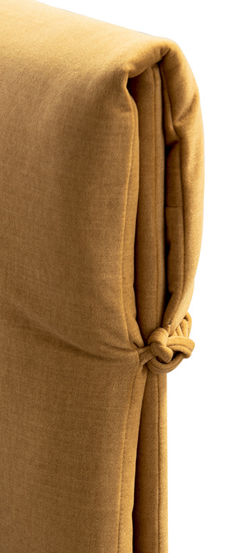 It is an iconic model that is an important part of the history of upholstered beds. With clean and simple lines, it is made to last. The large cushions that wrap around the headboard all the way round to the back are soft and comfortable, and are embellished with elegant ties on the two outer sides.