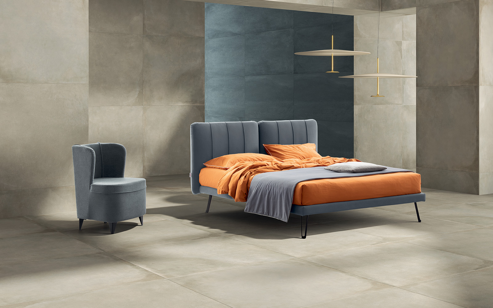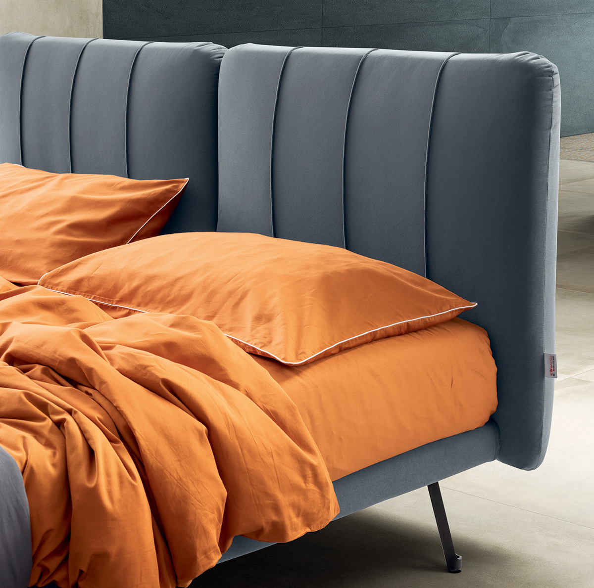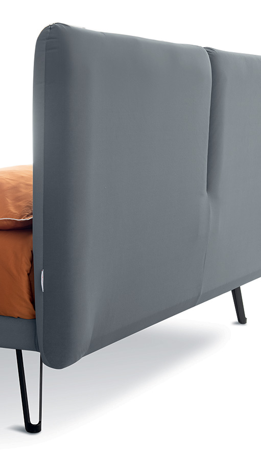 The back of the headboard entirely covered in fabric allows the Camilla bed to be placed in the center of the room, creating a pleasant aesthetic effect.