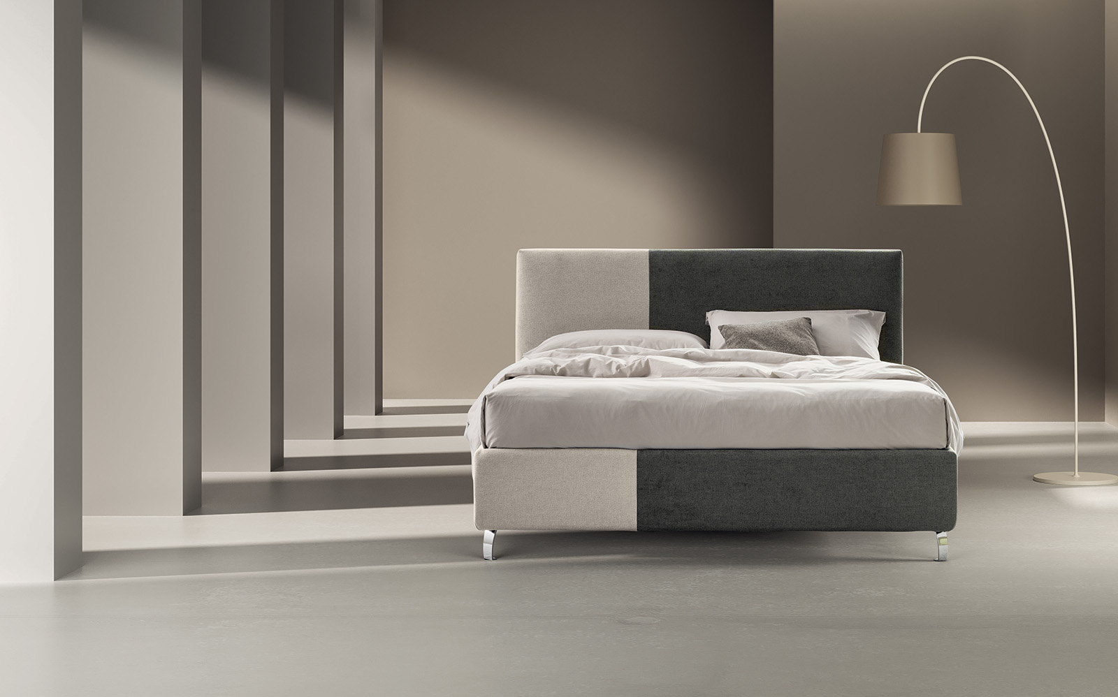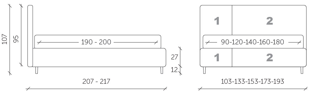 This bed features clean, simple lines and stands out for the asymmetrical two-tone finish of the headboard and bed frame. Edda is available in both the 27 and 17 bed frame versions to best interpret the buyer’s different styles and uses.
