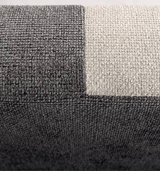 Detail of the headboard characterised by the contrast of the matching colours.