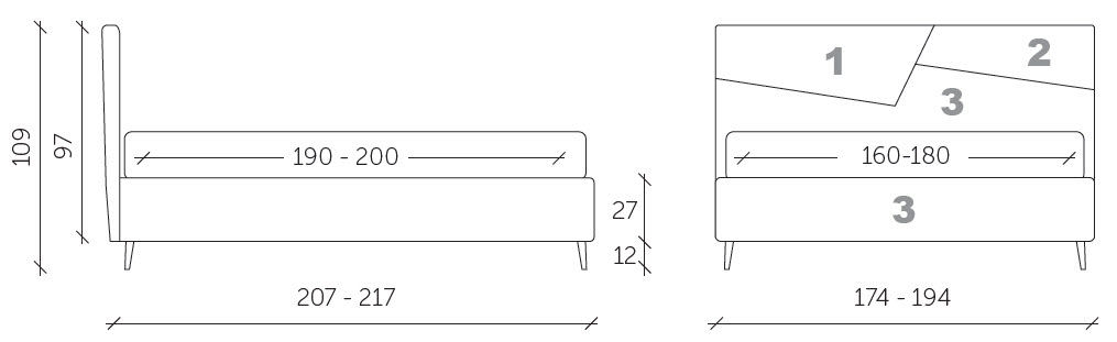 bed frame 27 | fabric NEVE col. 83 – 74 – 90 / feet art. MT12